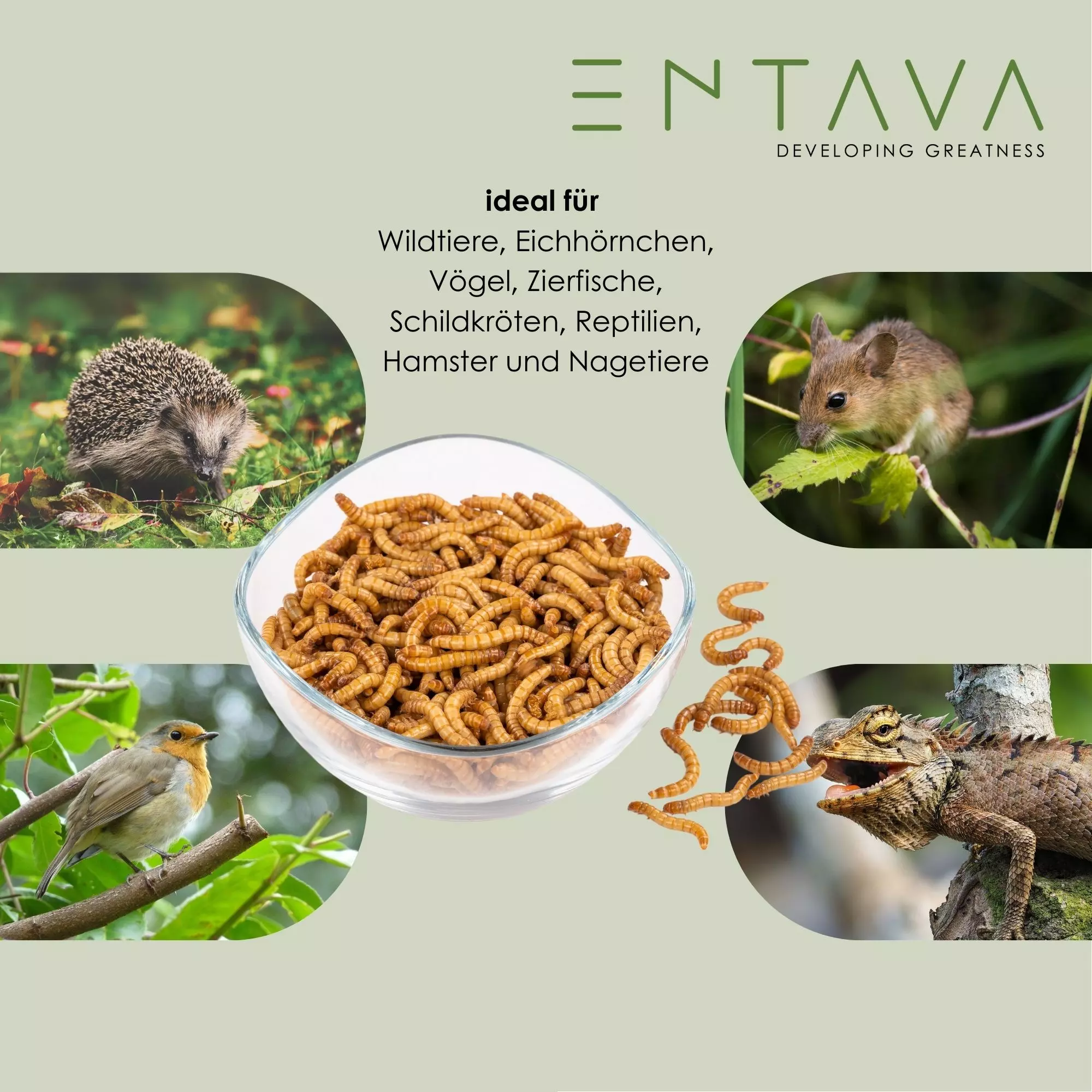 - Hochwertiges Einzelfuttermittel für Reptilien, Nager, Wildtiere und Vögel oder Ergänzungsfuttermittel für Fische, Vögel, Reptilien, Nagetiere und Insektenfresser