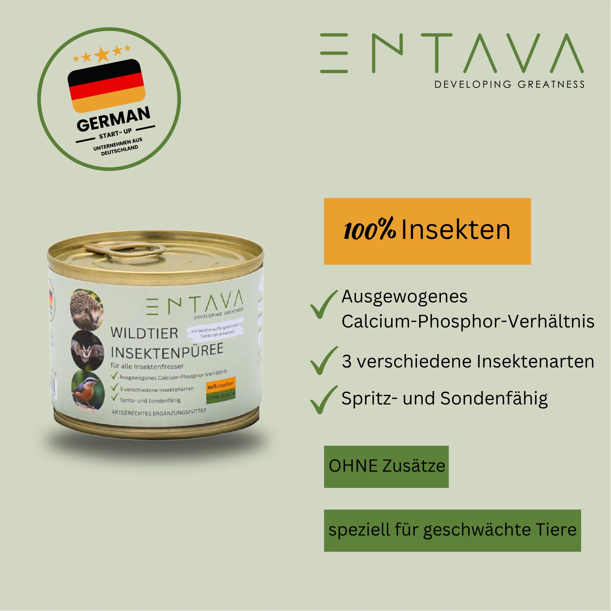 Produktinformationen "ENTAVA Wildtier Insektenpüree 200g Dose"