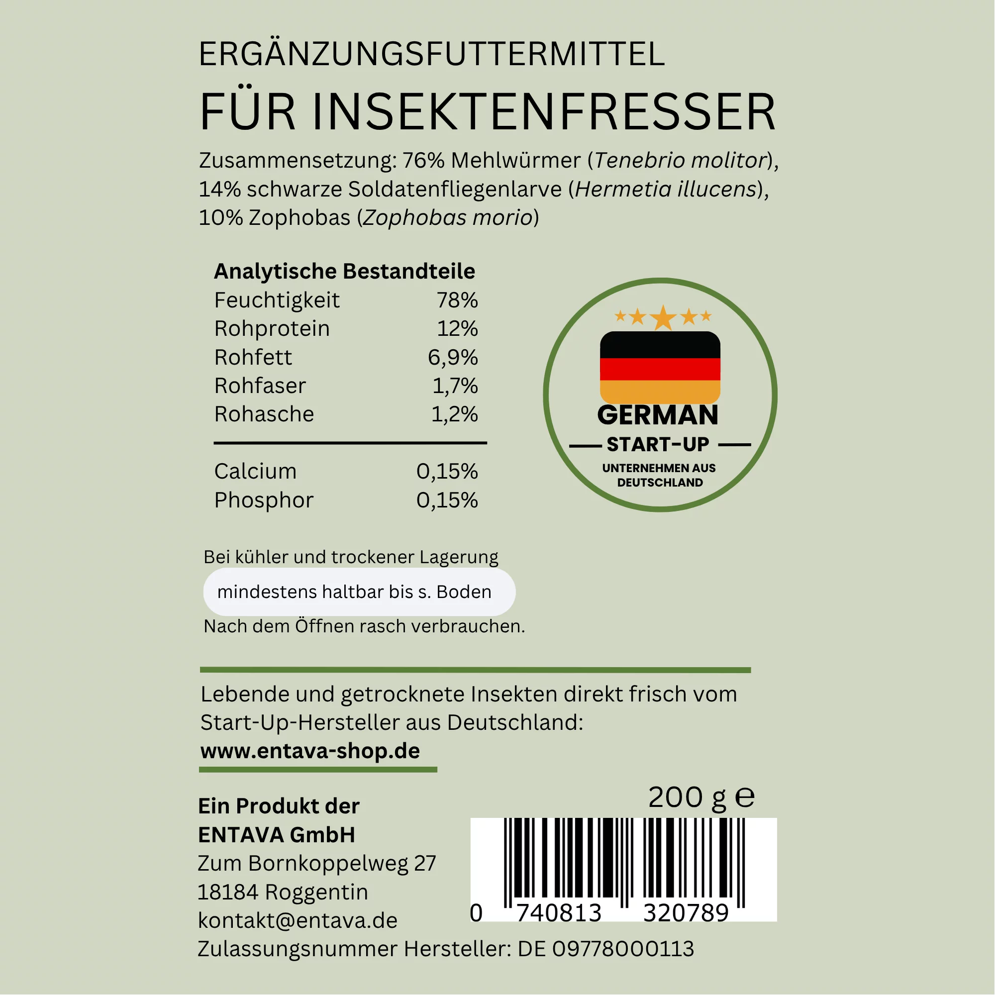 ENTAVA Frisches Insektenpüree - 100% Insekten, Igelfutter, Vogelfutter, Reptilienfutter, (Wild-) vogelfutter, Kleinnagerfutter, Frettchenfutter, Fischfutter (200g)