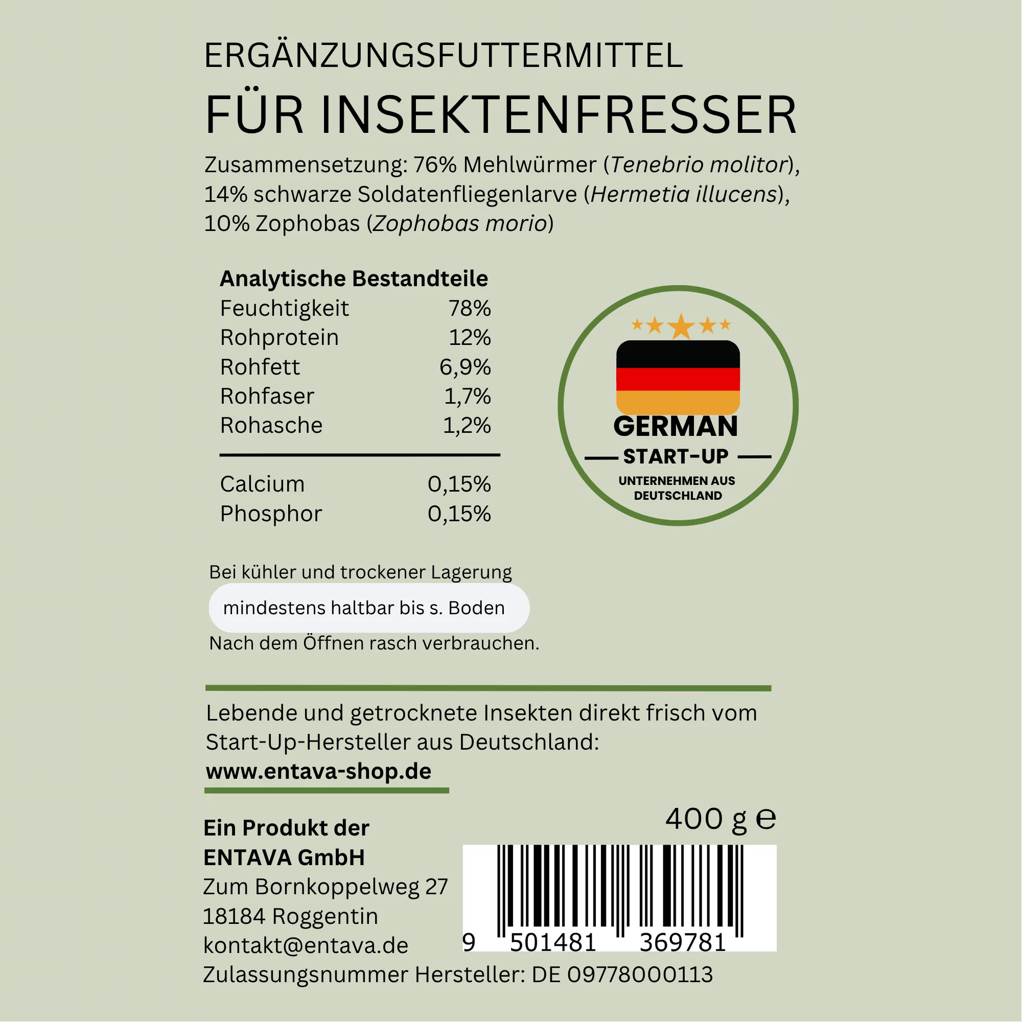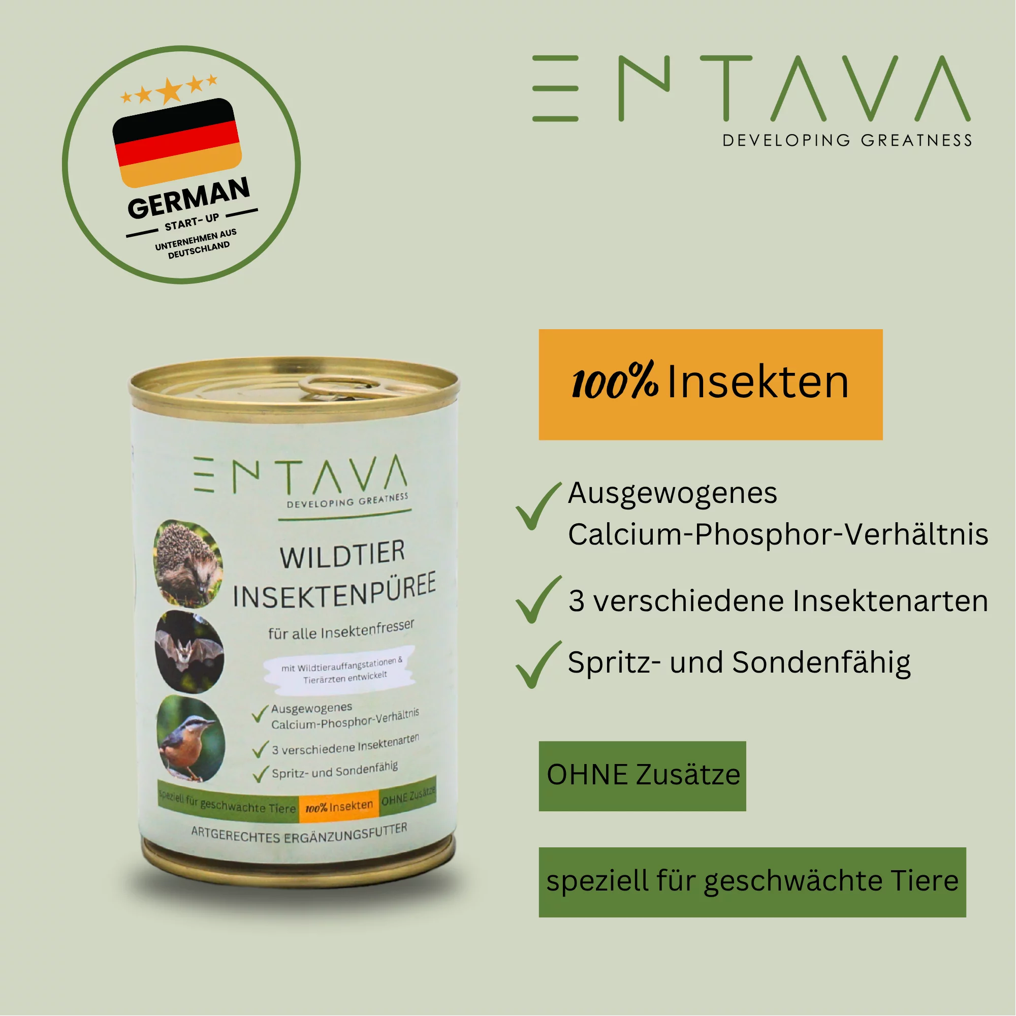ENTAVA Frisches Insektenpüree - 100% Insekten, Igelfutter, Vogelfutter, Reptilienfutter, (Wild-) vogelfutter, Kleinnagerfutter, Frettchenfutter, Fischfutter (400g)