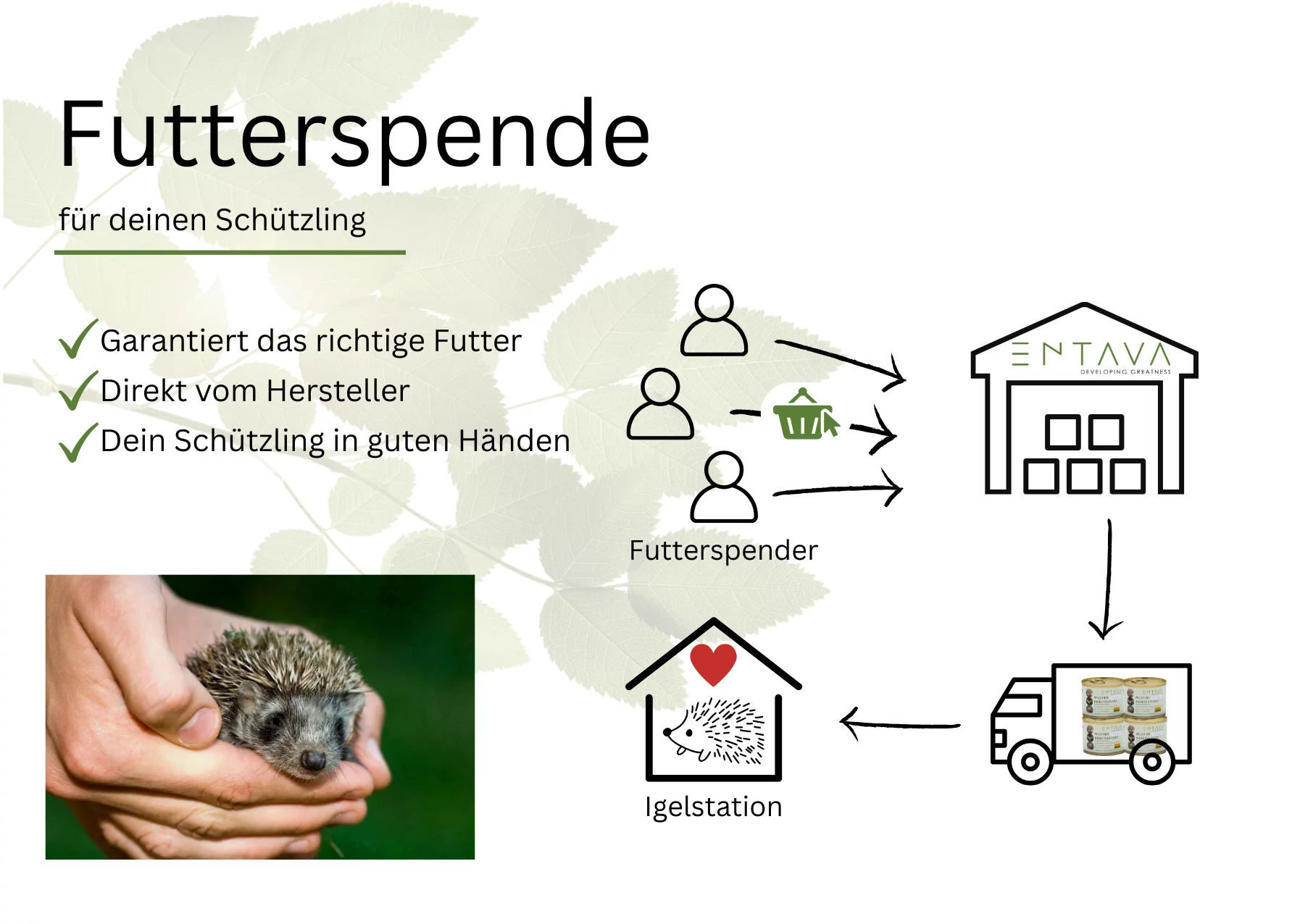 Direkte Lieferung: Ihre Spende geht nicht an Sie, sondern wird direkt an die gewählte Igelstation geliefert.